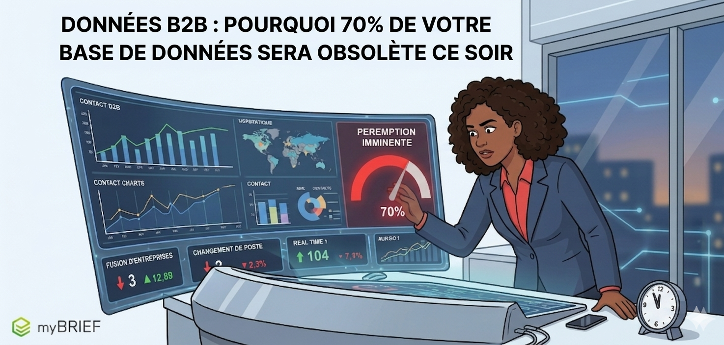 En B2B, le mouvement est perpétuel : les décideurs changent de poste, les entreprises fusionnent, d'autres cessent leur activité. Une donnée certifiée "propre" hier est, pour une part non négligeable, déjà obsolète aujourd'hui.