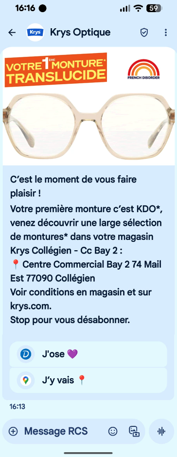 Elle permet aux marques d’envoyer des messages multimédias, interactifs et sécurisés directement dans l’application de messagerie native des utilisateurs (Android Messages ou Apple Messages depuis iOS 18).